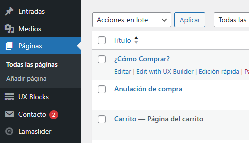 2. Dirígete al menú de la columna izquierda y selecciona el botón Páginas.